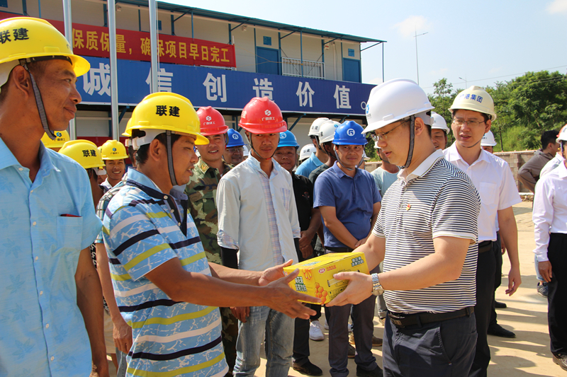 綠港集團黨委書記、董事長、總經理龔國強給項目一線人員送清涼