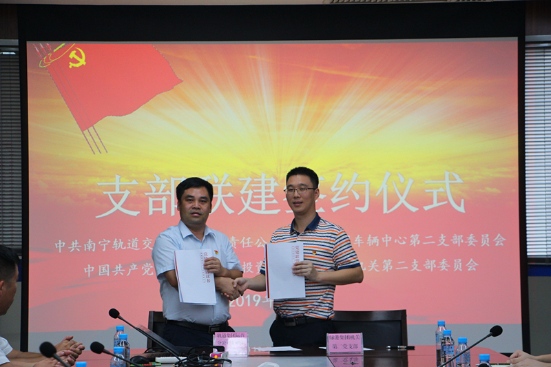 最后,南寧軌道交通集團有限公司運營分公司車輛中心第二黨支部與綠港集團機關二支部進行黨建聯盟簽約儀式,并授予了“南寧地鐵黨建聯盟”牌匾。通過黨組織的結對共建,結對雙方將努力實現“資源共享、優勢互補、互利共贏”的目標,充分發揮同盟的綜合效應,豐富基層黨建內涵,促進支部黨建工作水平再上新臺階。